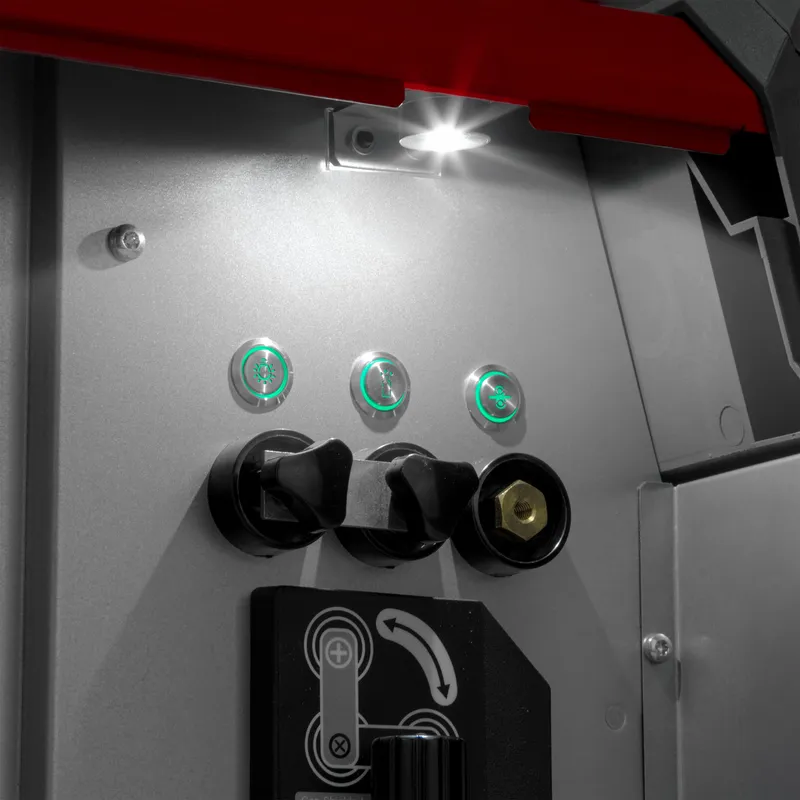 Intuicyjny i prosty w obsłudze 5-calowy dotykowy wyświetlacz LCD ułatwia regulację parametrów spawania za pomocą fizycznych przycisków, pokręteł oraz ekranu dotykowego, co sprawia, że obsługa urządzenia jest łatwa i wygodna.