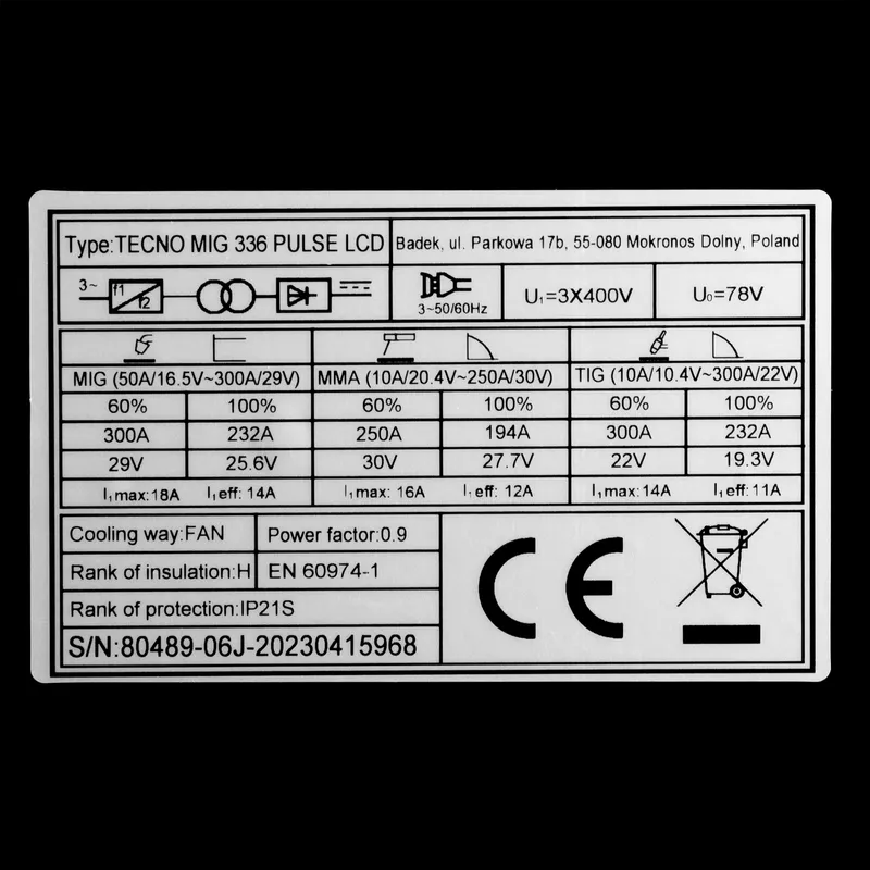 Ideal TecnoMIG 336 Pulse LCD to zaawansowana spawarka inwertorowa MIG MAG, która zyskała uznanie wśród klientów dzięki swojej mocy, nowoczesnym technologiom i jakości wykonania. Pomimo swojej zaawansowanej konstrukcji, jest to urządzenie niezwykle intuicyjne w obsłudze. Zasilana trójfazowym napięciem 400V, oferuje maksymalny prąd spawania wynoszący 300A. Wyposażona w tryby manualne, synergiczne, pulsacyjne oraz podwójny puls, zapewnia precyzyjne spawanie różnych materiałów, w tym stali czarnej, nierdzewnej, aluminium i blach ocynkowanych.