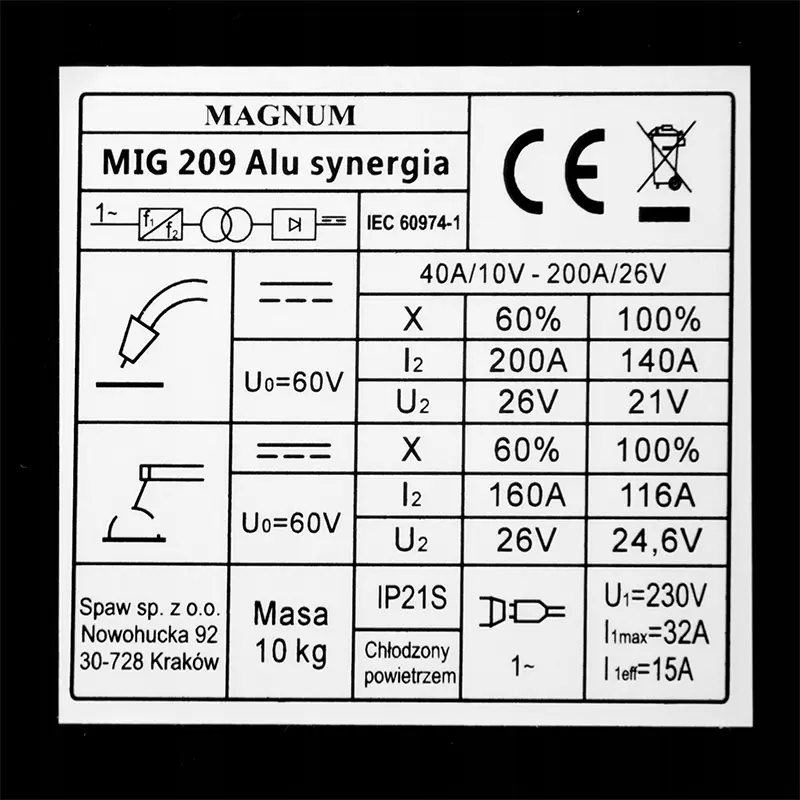 Spawarka Migomat Magnum MIG 209 Alu Synergia TIG Lift Zestaw #1 AK