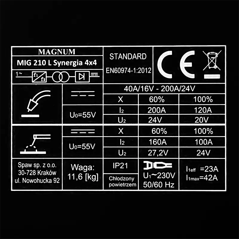 Spawarka Migomat Magnum MIG 210 L Synergia 4x4 200 Amper Zestaw #1
