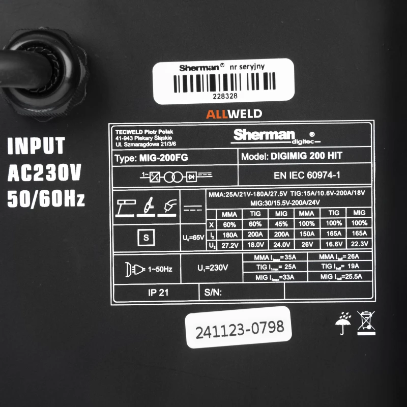 SPAWARKA MIGOMAT SHERMAN DIGIMIG 200 HIT SYNERGIA - MIG/MAG MMA TIG DC ZESTAW#2AK