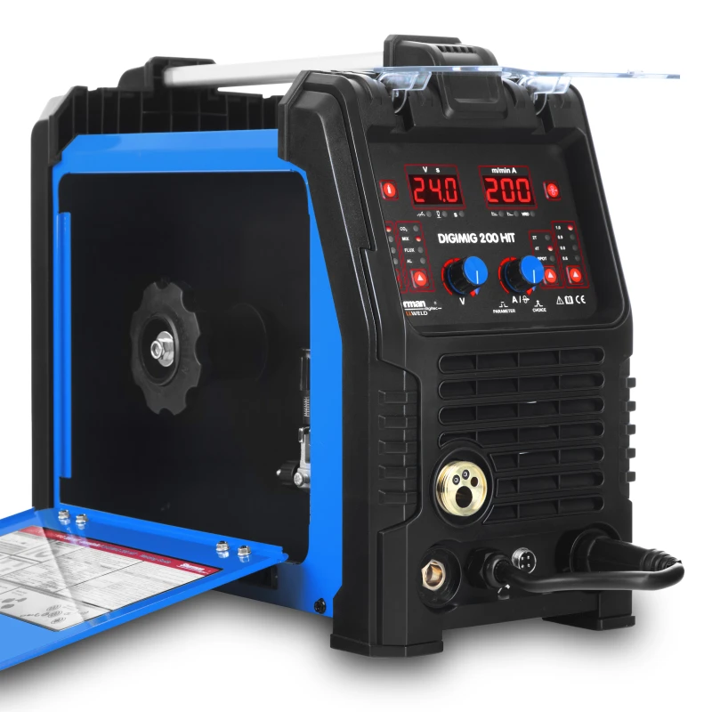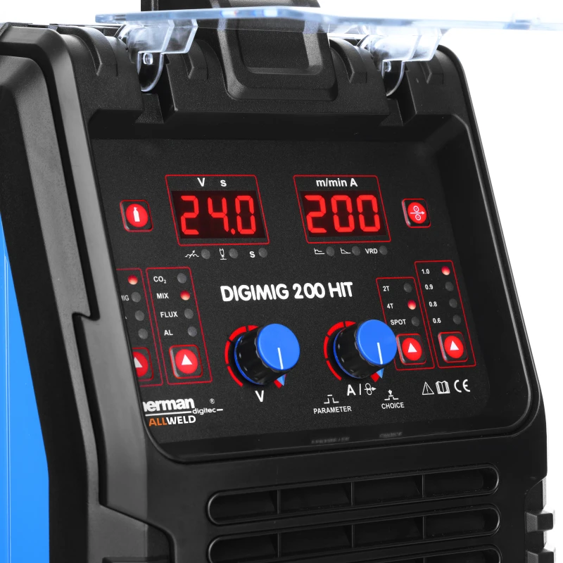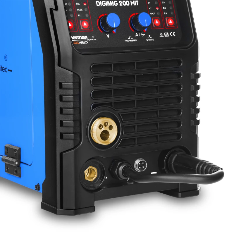 Synergiczna spawarka DIGIMIG 200 HIT przeznaczona jest do ręcznego spawania stali oraz metali nieżelaznych. Umożliwia pracę w trzech metodach: MMA (spawanie elektrodą otuloną), TIG Lift oraz MIG/MAG. Dzięki możliwości zmiany polaryzacji, urządzenie pozwala na spawanie metodą MIG/MAG zarówno przy użyciu standardowych drutów w osłonie gazów ochronnych, jak i drutów proszkowych samoosłonowych.