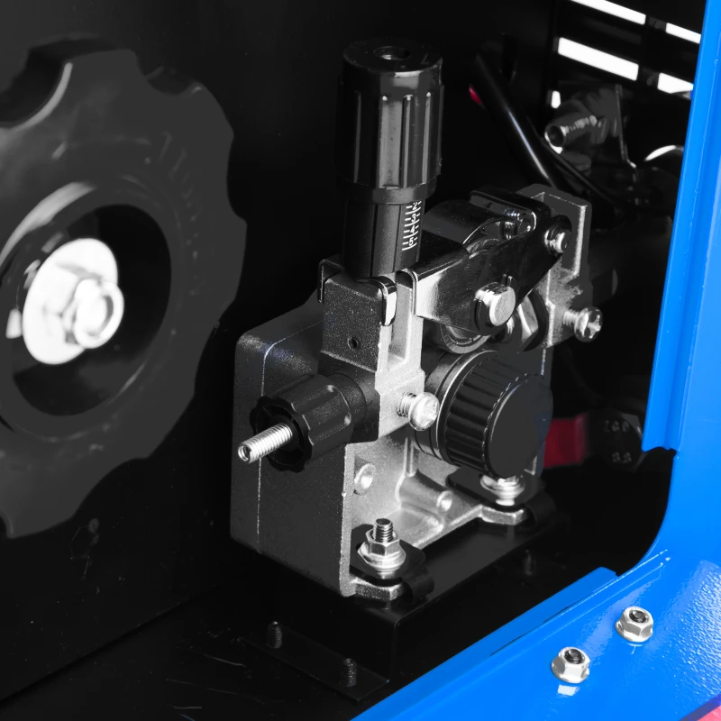 Synergia - automatycznie dobiera posuw drutu na podstawie średnicy drutu i prądu spawania. Szczególnie przydatne dla początkujących spawaczy.