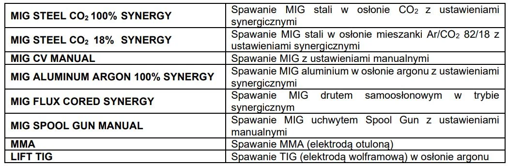 ✅ Spawanie MIG/MAG w trybie manualnym i synergicznym