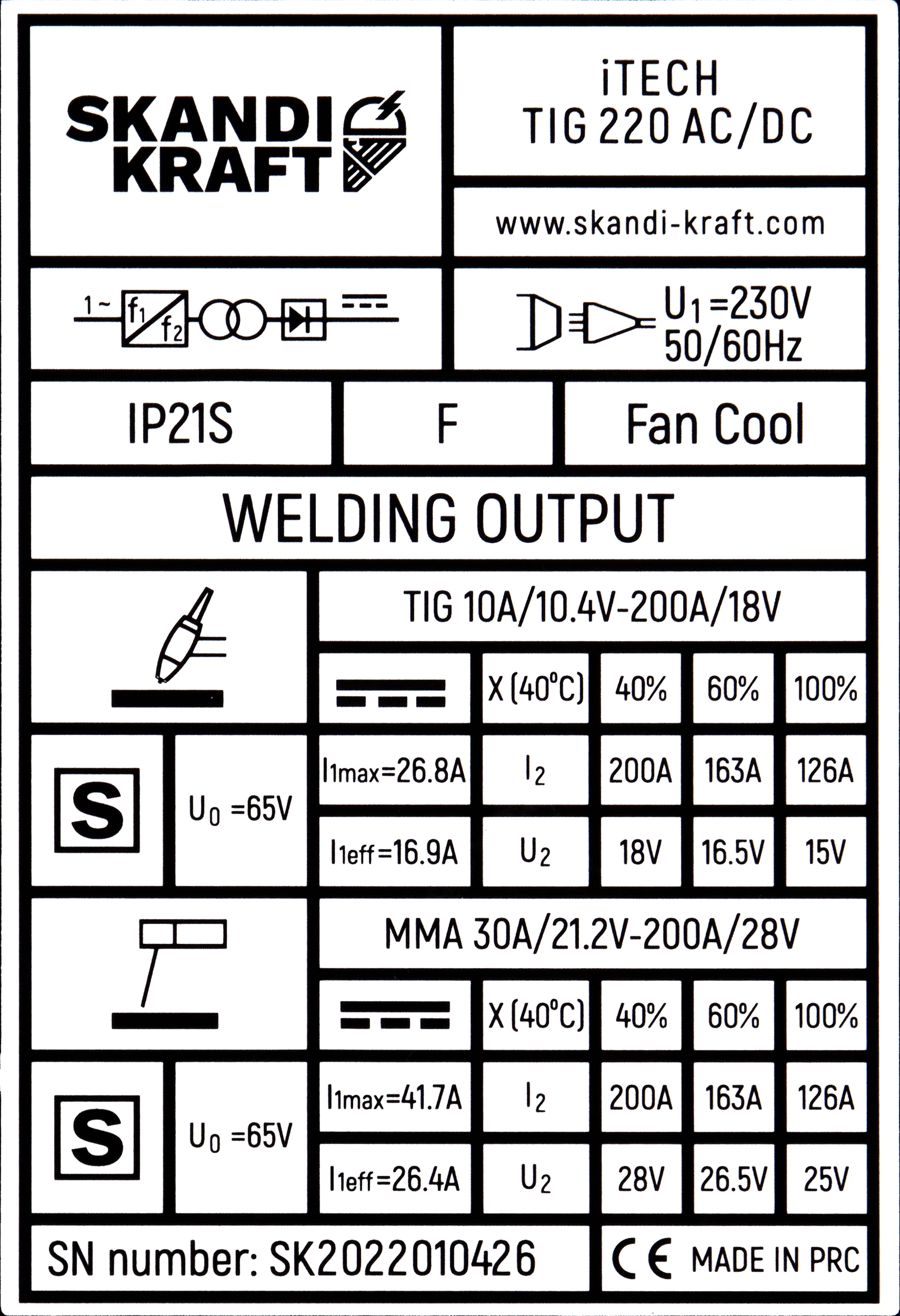 SKANDI KRAFT iTECH TIG 220 AC/DC