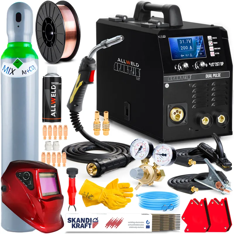 SPARTUS® EasyMIG 207DP to półautomatyczna spawarka oparta na technologii tranzystorów IGBT. Umożliwia: synergiczne spawanie MIG/MAG z podwójną pulsacją, synergiczne spawanie MIG/MAG z pulsacją, spawanie MIG/MAG w trybie synergicznym, spawanie TIG Lift oraz spawanie elektrodą otuloną MMA. Maksymalny prąd spawania dla wszystkich metod wynosi 200A. Urządzenie zasilane jest z jednofazowej sieci o napięciu 230V.