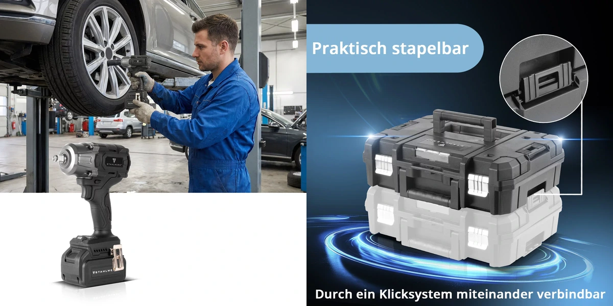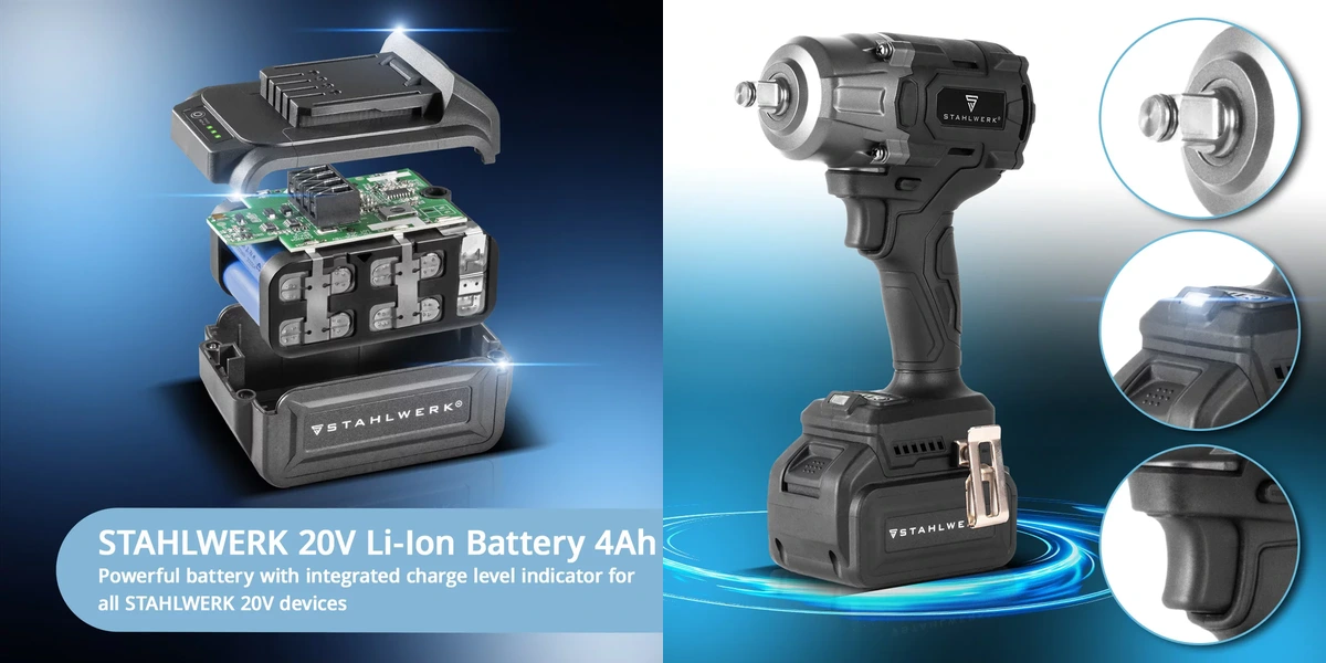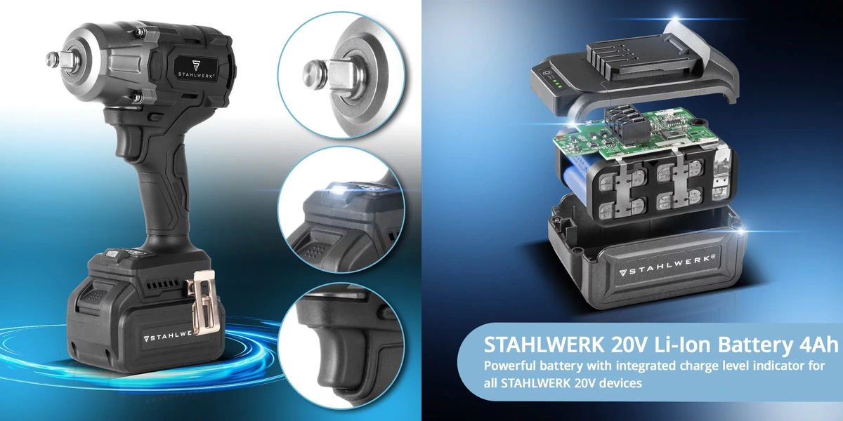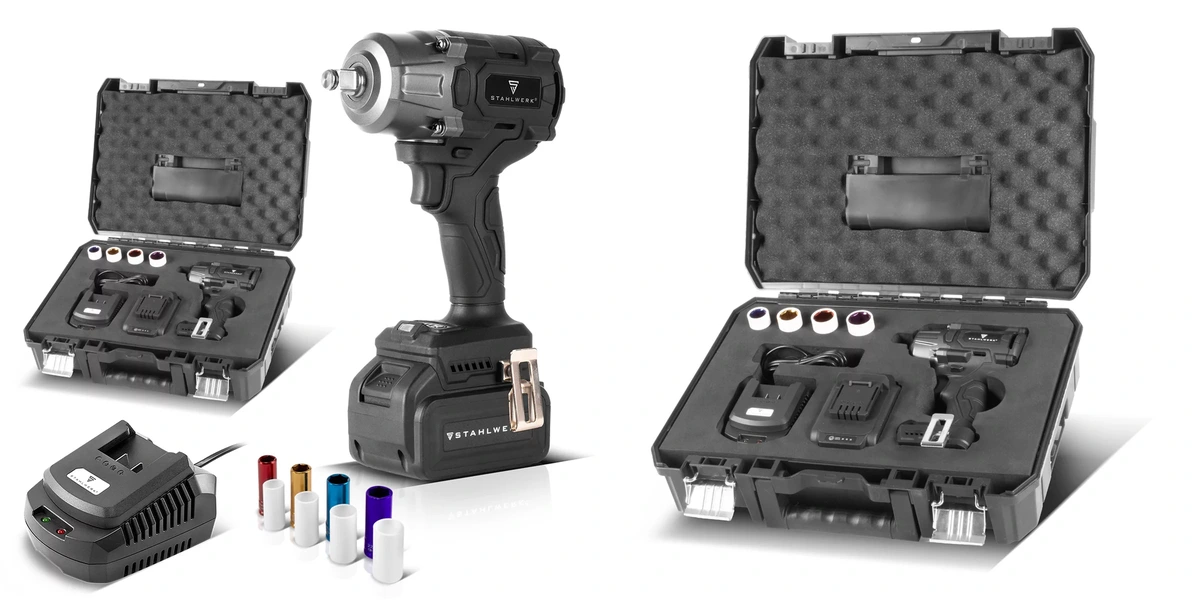 - 1 x akumulatorowy klucz udarowy STAHLWERK 20 V