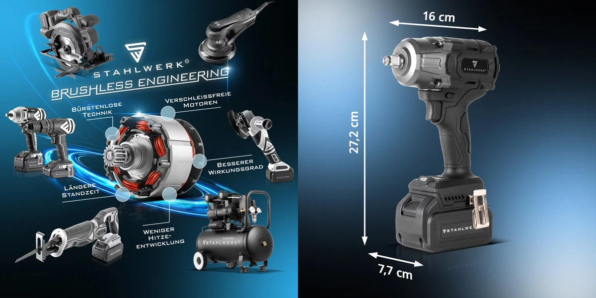 - Model STAHLWERK ADS-880 ST to wydajne urządzenie akumulatorowe, które łączy potężną siłę z lekką i ergonomiczną budową. Zastosowanie silnika bezszczotkowego przekłada się na wysoką sprawność energetyczną, co pozwala na dłuższą pracę bez przerw oraz znacząco podnosi bezawaryjność sprzętu.