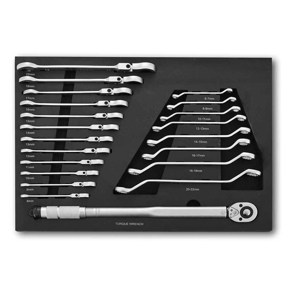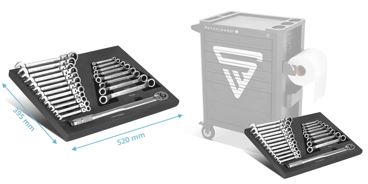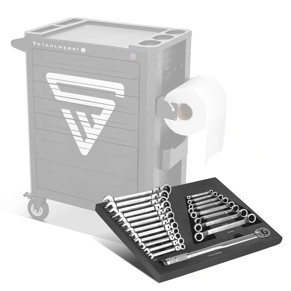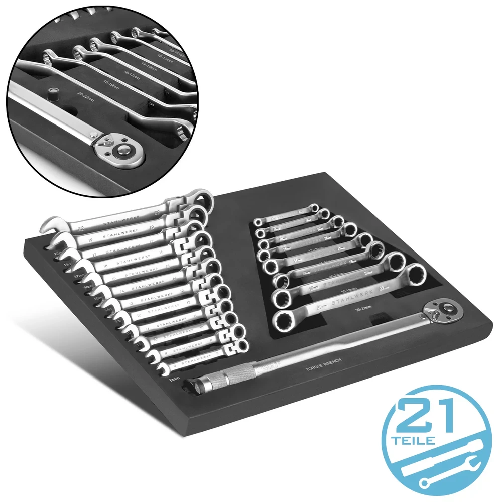 STAHLWERK 21-częściowy Zestaw Kluczy z Kluczem Dynamometrycznym - Wkładka do Wózka