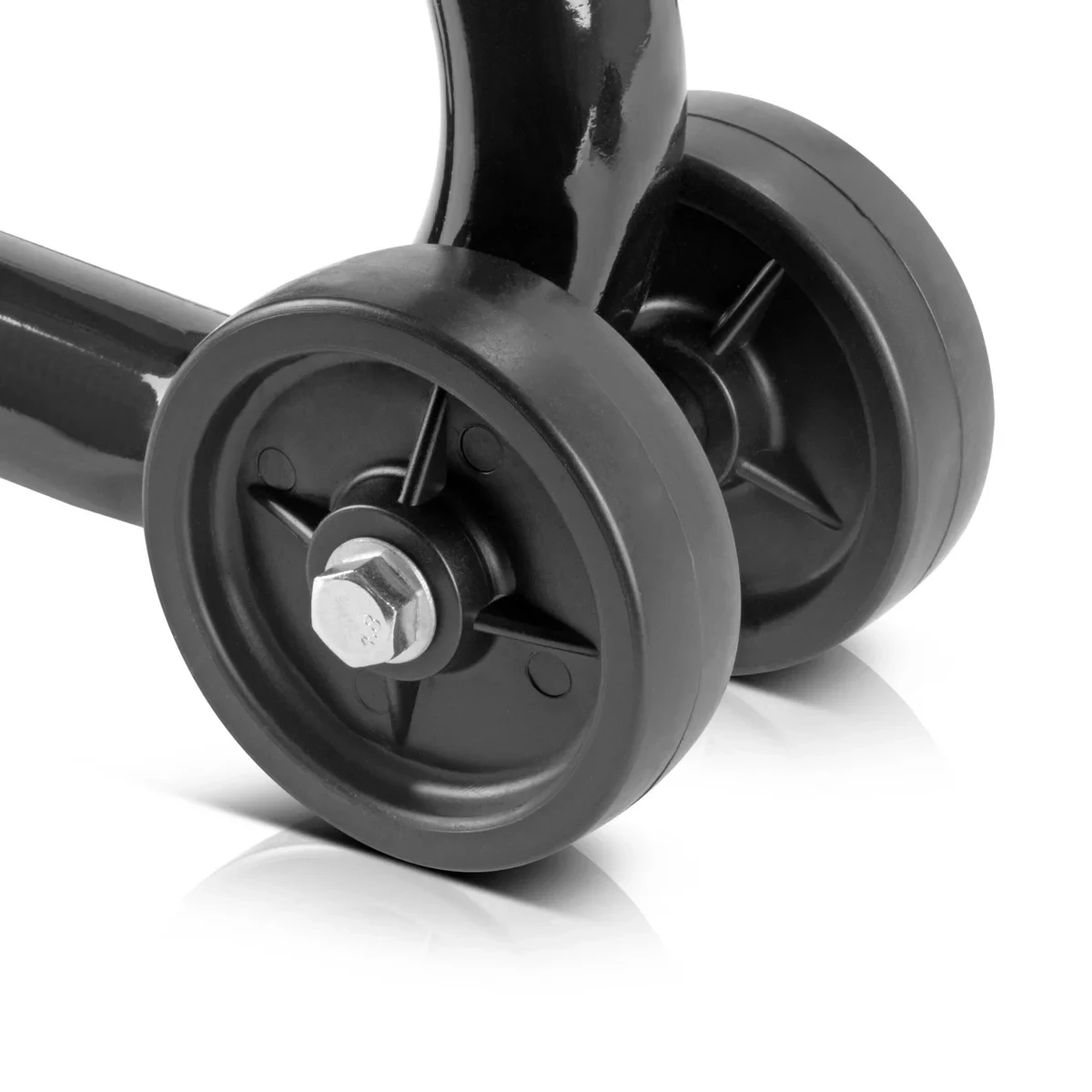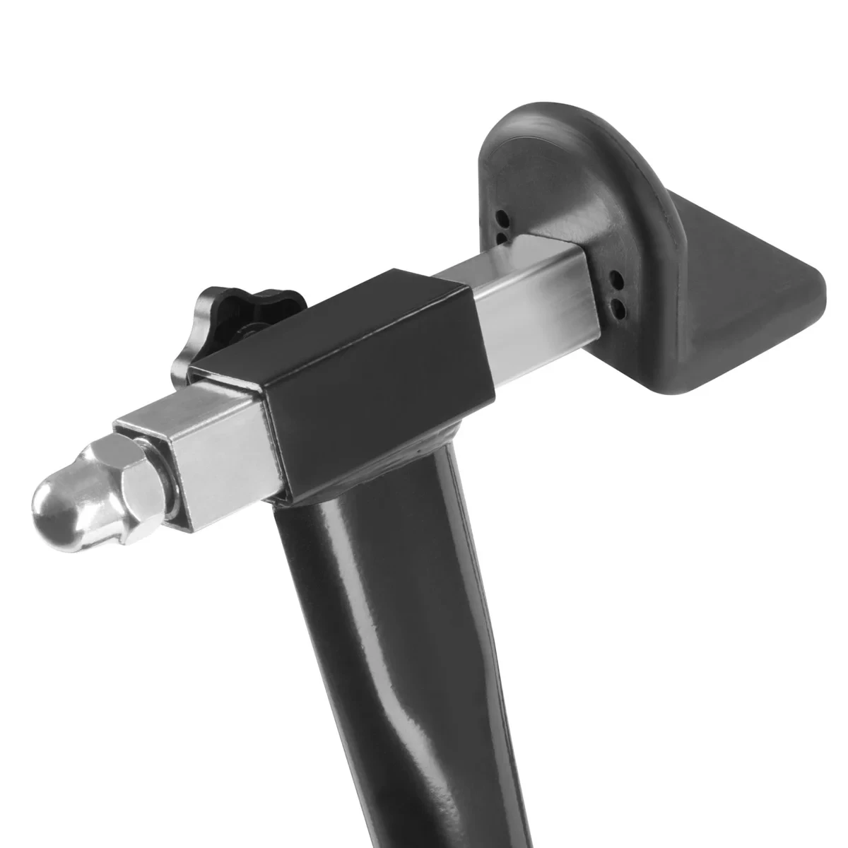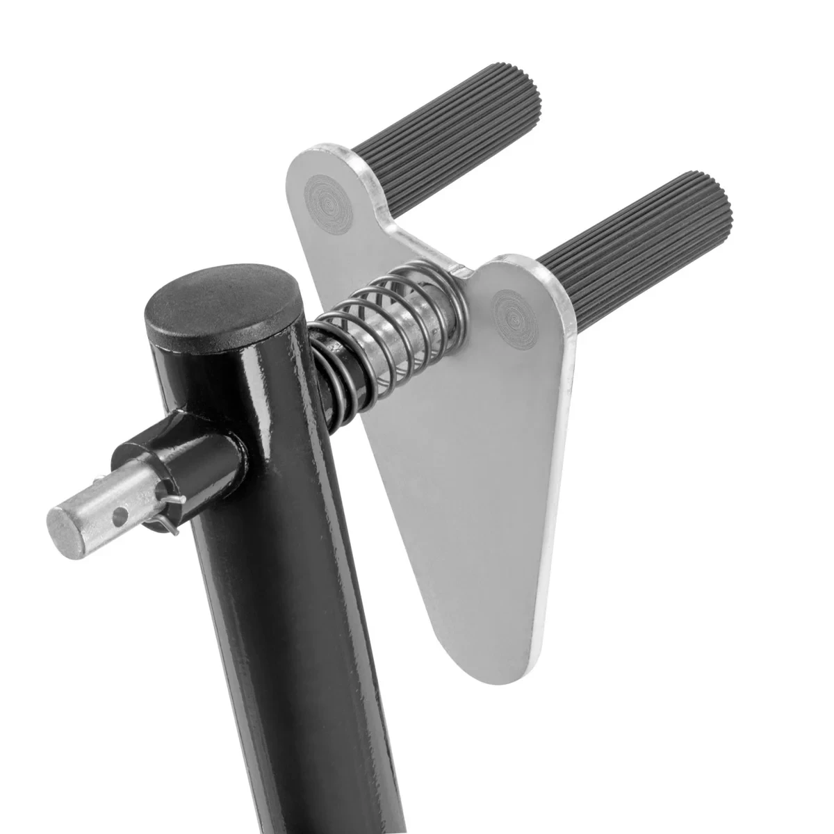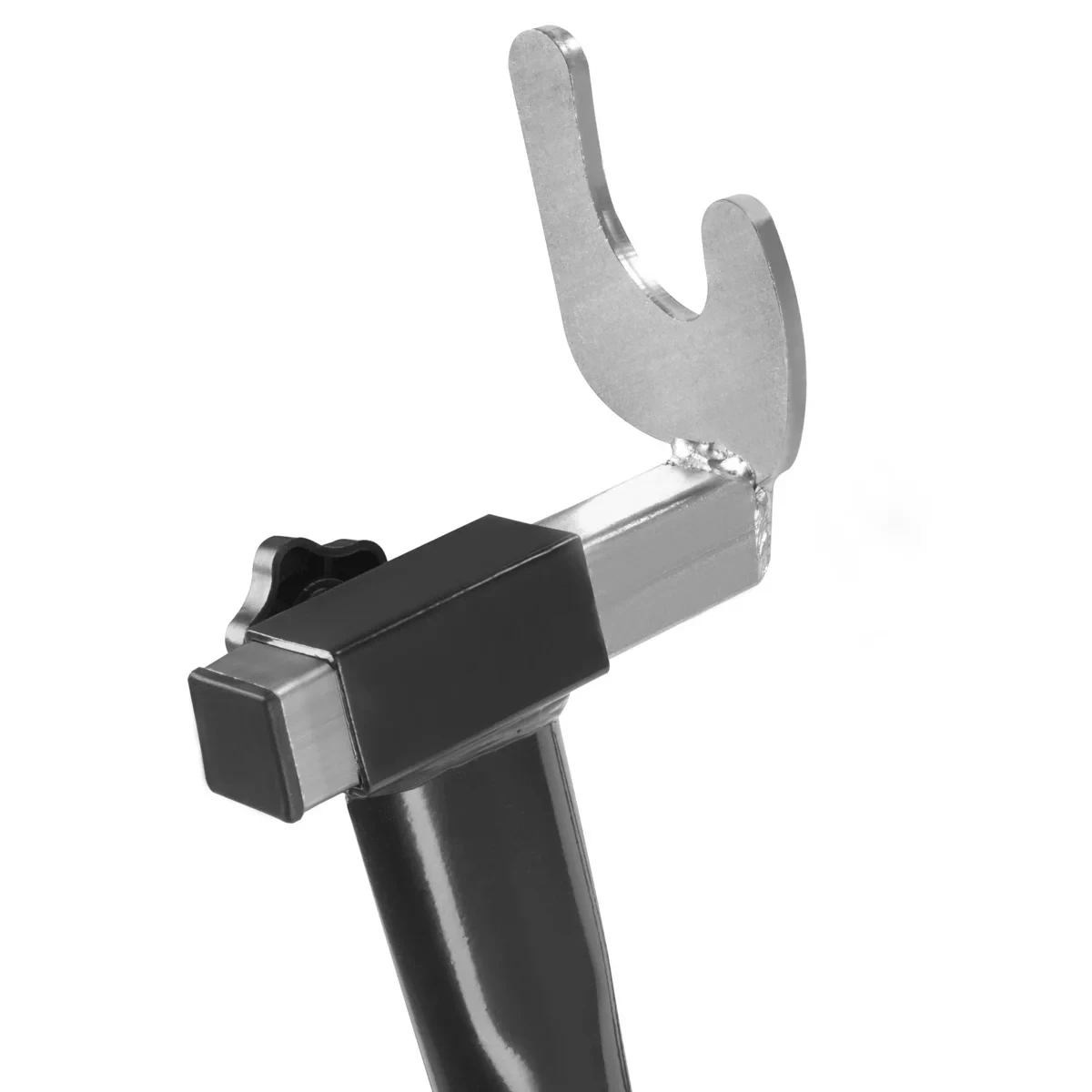 Uniwersalny podnośnik motocyklowy umożliwia szybkie uniesienie pojazdu w kilku prostych krokach, bez zbędnego wysiłku. Regulowany uchwyt na koło pozwala na precyzyjne dopasowanie stojaka do różnych średnic kół, dzięki czemu rozwiązanie to sprawdzi się w przypadku większości standardowych motocykli, skuterów oraz motorowerów. Sztywna, bezskrętna konstrukcja stalowa wahacza gwarantuje wysoką stabilność i pewne podparcie pojazdu nawet przy maksymalnym obciążeniu. Całość została zabezpieczona trwałą powłoką proszkową, która skutecznie chroni elementy stojaka przed korozją, uszkodzeniami mechanicznymi i wpływem czynników zewnętrznych.