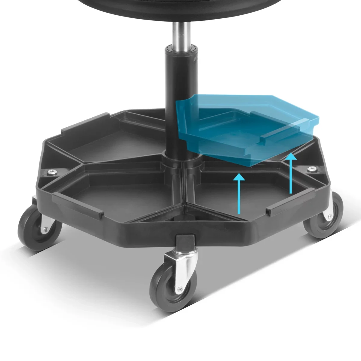Stołek warsztatowy o regulowanej wysokości STAHLWERK WRH-57 ST został zaprojektowany z myślą o maksymalnej wygodzie i funkcjonalności w każdym warsztacie. Cztery duże, wyjmowane wkładki umożliwiają uporządkowane przechowywanie narzędzi i materiałów, dzięki czemu wszystkie potrzebne akcesoria są zawsze pod ręką podczas pracy. Solidna rama wykonana z malowanej proszkowo stali, odpornej na skręcanie, zapewnia wyjątkową stabilność i nośność do 120 kg, nawet przy intensywnym użytkowaniu.