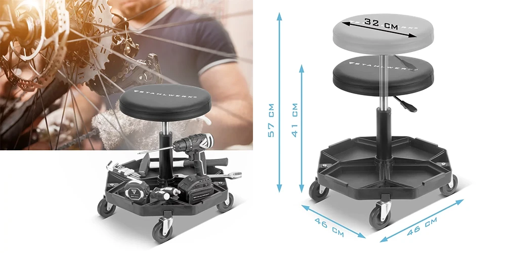 - 1 x Stołek warsztatowy STAHLWERK WRH-57 ST.
