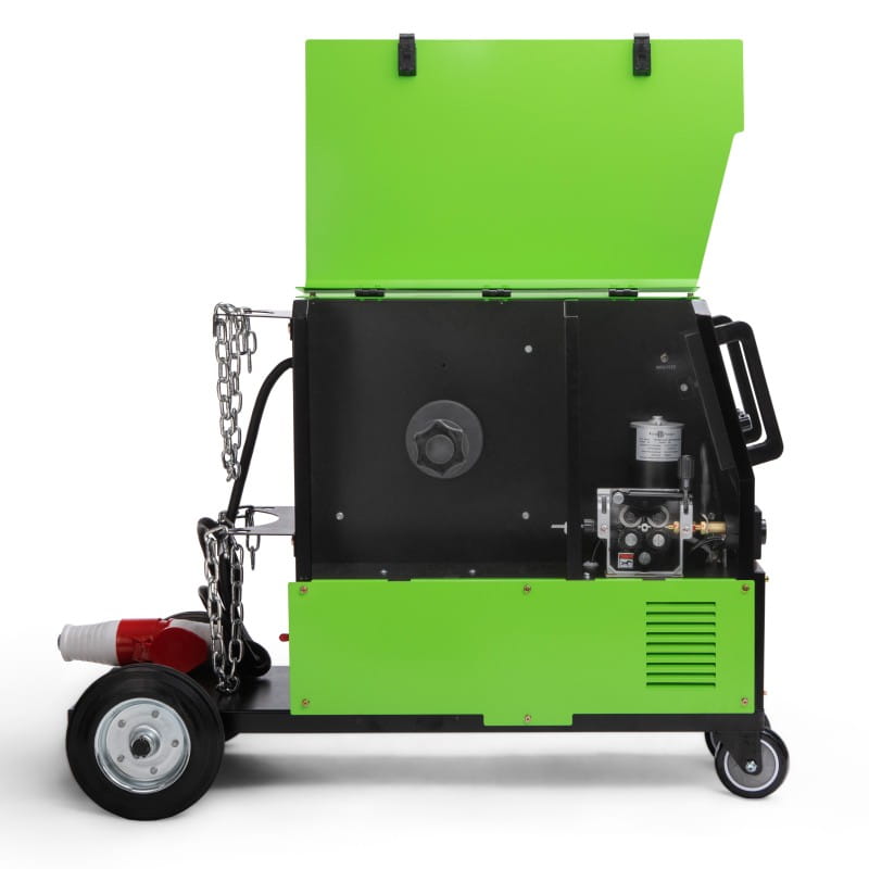 Trafimig Dual 300 jest stworzony do spawania konstrukcji średnich oraz lekkich w warunkach warsztatowych, jak i przemysłowych. Urządzenie może być użytkowane zarówno wewnątrz, jak i na zewnątrz pomieszczeń zamkniętych,. Duże koła transportowe dają możliwość przemieszczania spawarki po nierównym podłożu.