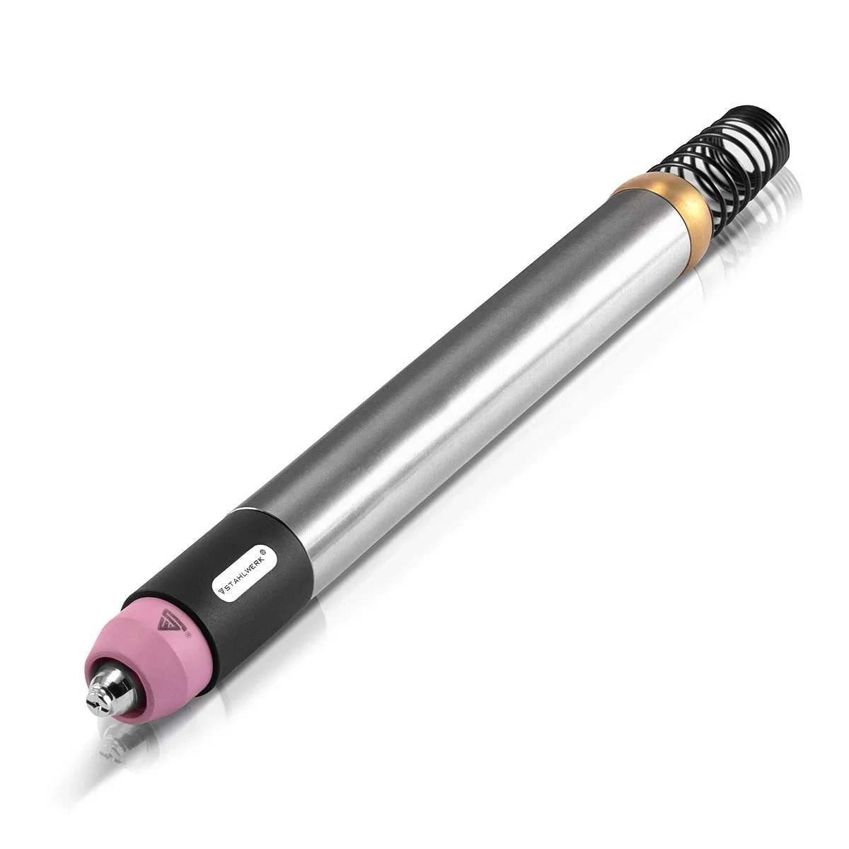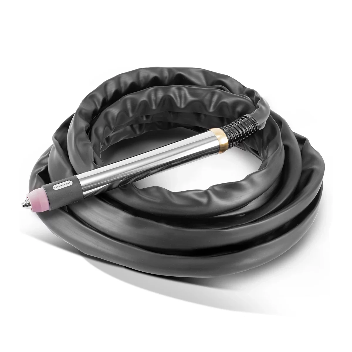 Uchwyt plazmowy STAHLWERK P60 CNC z wężem o długości 5 metrów został zaprojektowany z myślą o precyzyjnym i powtarzalnym cięciu w systemach wykorzystujących zapłon pilotowy. Pionowe ustawienie głowicy umożliwia bezproblemową integrację z maszynami CNC, co czyni go odpowiednim rozwiązaniem zarówno do pracy ręcznej, jak i w pełni zautomatyzowanych procesów produkcyjnych. Solidna konstrukcja uchwytu oparta jest na obudowie ze stali nierdzewnej oraz zintegrowanej głowicy mosiężnej i gwarantuje wysoką odporność na temperaturę, zużycie i intensywną eksploatację. Uchwyt jest w pełni kompatybilny z popularnymi częściami eksploatacyjnymi AG60 oraz przecinarkami plazmowymi STAHLWERK z zapłonem pilotowym o maksymalnym prądzie do 60 A (CUT 40 P, CUT 50 P, CUT 60 P).