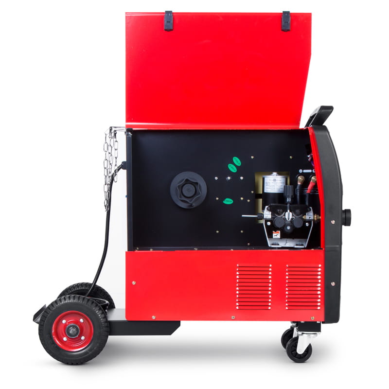 Płynna regulacja napięcia spawania sprawia, że można spawać materiały o różnych grubościach przy zachowaniu stabilnego łuku pozbawionego nadmiernych odprysków. Bardzo solidne wykonanie, w bardzo wytrzymałej obudowie, odpornej na uderzenia mechaniczne oraz na pracę w różnych warunkach atmosferycznych. Urządzenie wyposażone jest w wysokiej jakości profesjonalny zespół podający 4-rolkowy, odlewany ciśnieniowo z aluminium. Przeznaczony do pracy pod dużym obciążeniem.
