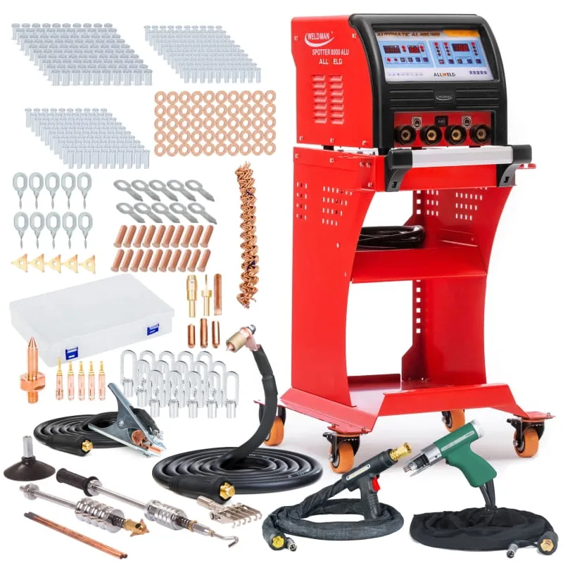 Spotter blacharski Weldman 8000, nazywany zgrzewarką, przeznaczony jest do sprawnej naprawy samochodowej karoserii. Sprzęt ten można znaleźć nie tylko w warsztatach samochodowych i blacharsko-lakierniczych, ale również w zakładach przemysłowych działających w branży motoryzacyjnej. Służą do zgrzewania elementów mocujących do powierzchni blachy, która uległa odkształceniom, co pozwala na wyciąganie wgnieceń. Zgrzewarki wykorzystywane są też do łatania, rozgrzewania i bańkowania czy spęczania blachy (punktowego zgrzewania i natychmiastowego schłodzenia w celu usztywnienia oraz ściągnięcia materiału). Spotter blacharski pozwala na naprawę: słupkówmaskidrzwipokrywy bagażnika, a także dachubłotnika czy progów.