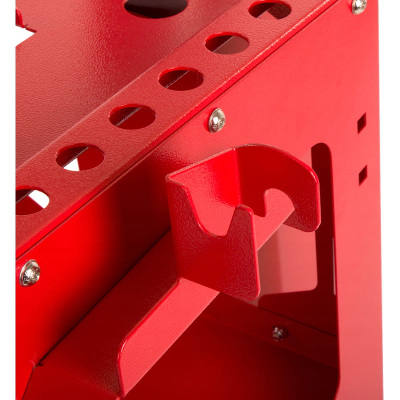 Wózek wyposażono w 3 półki, dzięki czemu oprócz miejsca na urządzenie i chłodnicę, mamy dodatkowe miejsce np. na akcesoria spawalnicze. Dzięki dużym półkom i sporych odległościach między nimi wózek pasuję do większości urządzeń spawalniczych, chłodnic, plazm, spotterów.