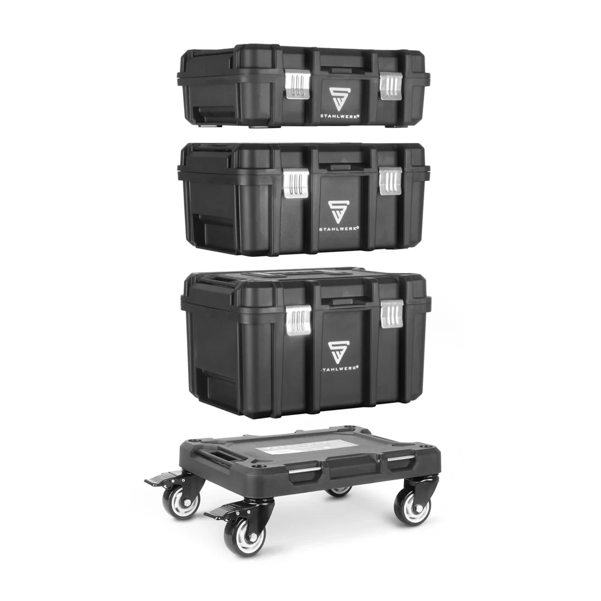 Zestaw 3 skrzynek narzędziowych z mobilną platformą STAHLWERK