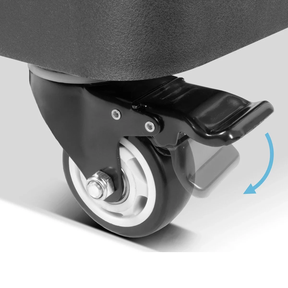 - 4 x Płynnie obracające się kółka obrotowe (2x z hamulcem postojowym) wraz z materiałem montażowym.