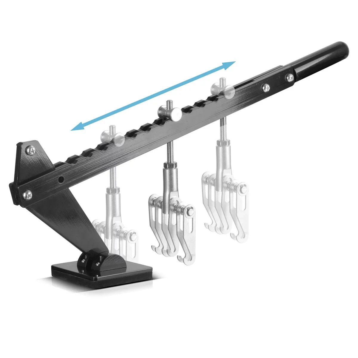 Zestaw do usuwania wgnieceń STAHLWERK to profesjonalne narzędzie przeznaczone do pracy w warsztacie samochodowym i serwisie blacharsko-lakierniczym. Zestaw umożliwia szybkie i precyzyjne usuwanie wgnieceń i drobnych uszkodzeń karoserii pojazdów, niezależnie od miejsca ich występowania. W skład zestawu wchodzą solidny pazur do wyciągania wgnieceń oraz regulowany aluminiowy ściągacz, które sprawdzają się przy pracy na progach, błotnikach, maskach, dachach i innych elementach nadwozia samochodów. Dzięki ergonomicznej konstrukcji narzędzi użytkownik może wygodnie i precyzyjnie kontrolować siłę, co zapewnia optymalne przenoszenie nacisku i minimalizuje ryzyko dodatkowych uszkodzeń powierzchni.