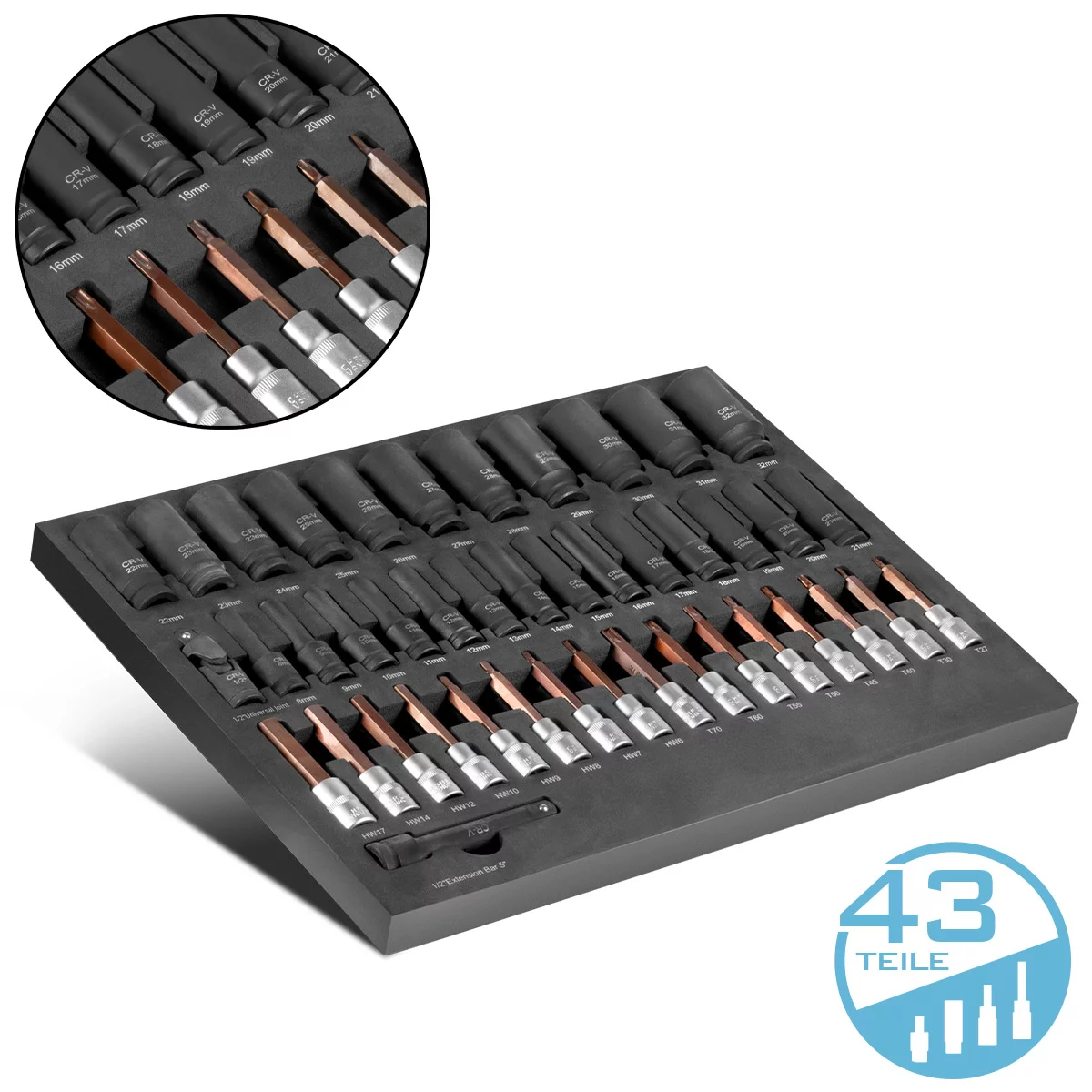 - 1 x Wkładka piankowa z 43-częściowym zestawem narzędzi.