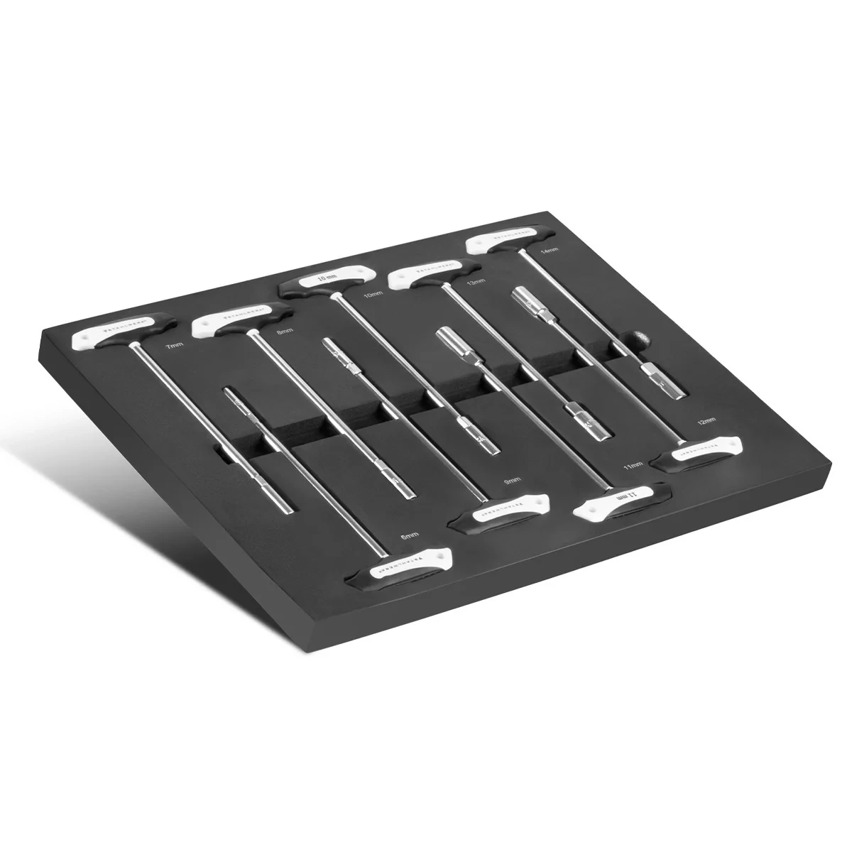 - 9 x Klucz nasadowy sześciokątny z rękojeścią T: 6 mm, 7 mm, 8 mm, 9 mm, 10 mm, 11 mm, 12 mm, 13 mm, 14 mm.