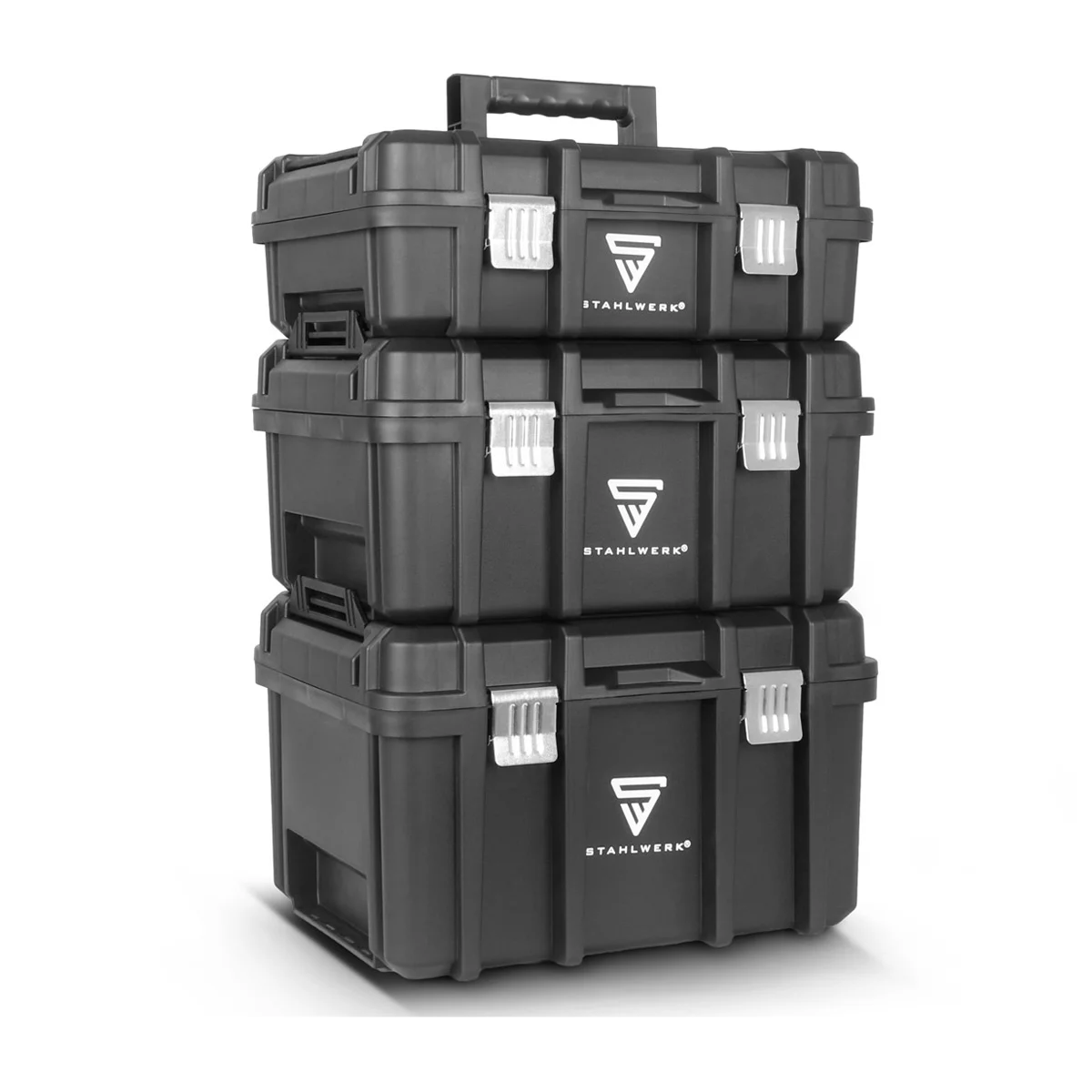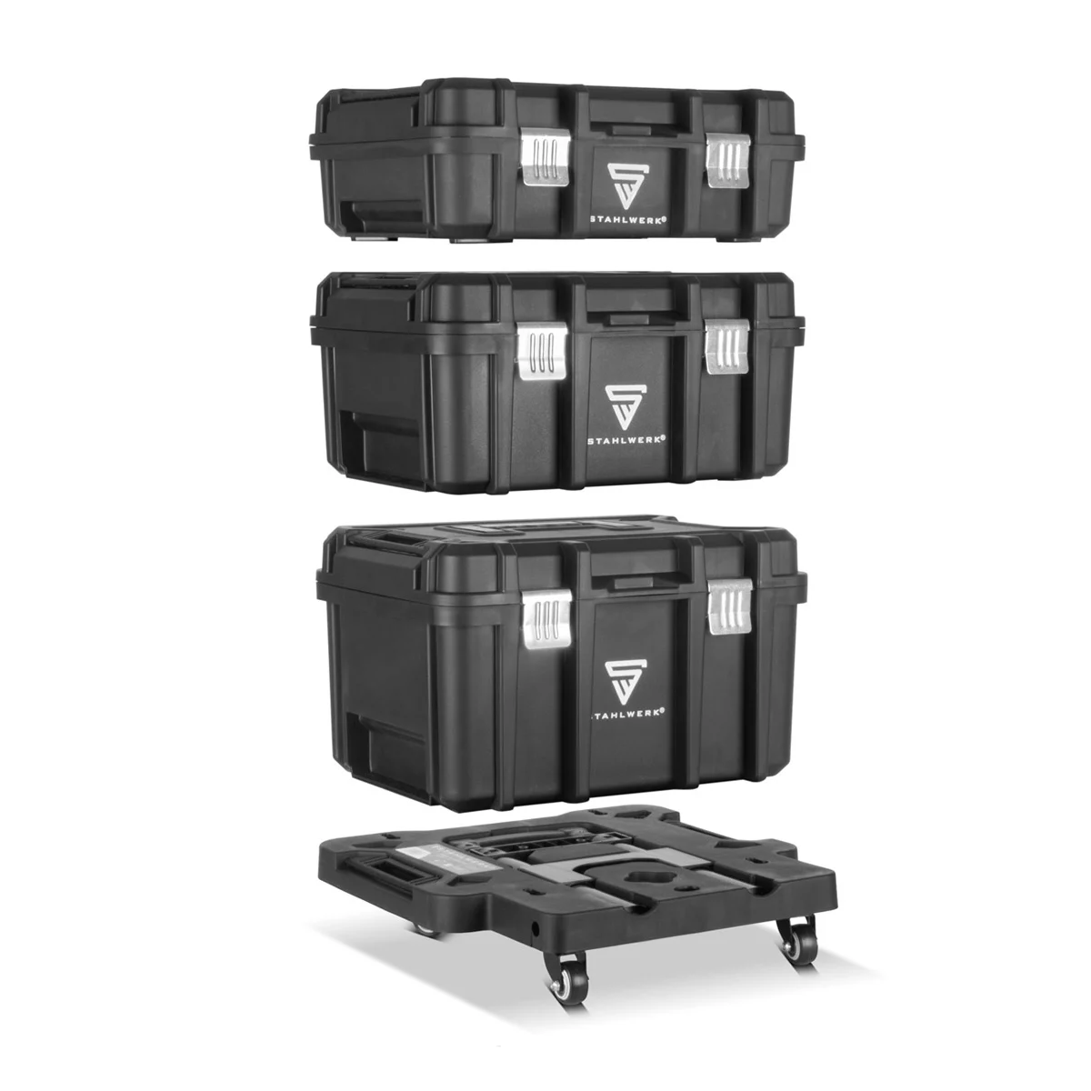 Zestaw 3 skrzynek narzędziowych z mobilną platformą z uchwytem STAHLWERK
